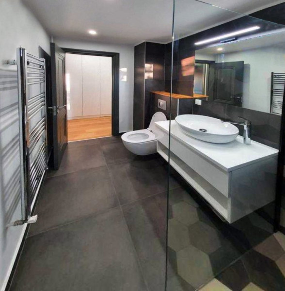 Locuinta, proaspat renovata, bucatarie mobilata si complet utilata (Whirlpool, Gorenje, Samsung, toate noi), este dotata cu centrala termica Wiessman in condensatie, baterii si lavoare noi, parchet triplu stratificat, gresie si faianta Marazzi, usa metalica antiefractie.