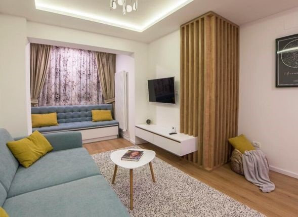 Amenajat de un designer, acest apartament ofera pachetul complet de confort si lux fiind compartimentat astfel: 1 living, 1 bucatarie cu loc de luat masa, 1 dormitor si baie. Apartamentul se vinde complet utilat si mobilat cu mobila facuta la comanda.