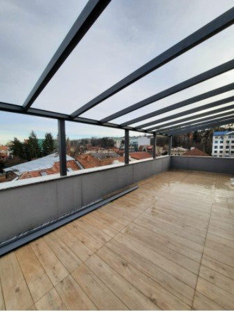 Apartamentul este situat la etajul 3 al unui imobil cu 3 nivele, este sigurul apartament pe etaj si este compartimentat astfel: living generos cu bucatarie open space si loc pentru servirea mesei, 2 dormitoare, 2 bai cu geam, 1 dressing, 1 hol si o terasa ce masoara 32 mp. Terasa, care ofera o panorama foarte frumoasa, va fi mobilata, oferind un plus de confort pentru petrecerea timpului liber. De asemenea, pentru un nivel suplimentar de siguranta al viitorilor locatari, proprietatea dispune de sistem de alarma.