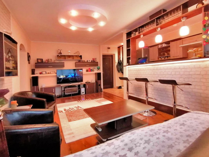 Se vinde mobilat si utilat, asa cum se vede in fotografii (mai putin echipamentele IT si audio video), centrala termica Bosch, aragaz si cuptor electric, masina de spalat vase Whirlpool, masina de spalat haine Arctic, frigider Indesit.