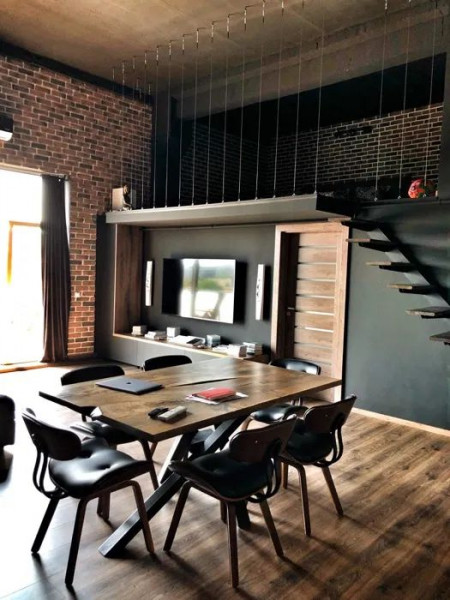 Apartamentul este structurat astfel: la primul nivel avem un living open space extrem de spatios cu loc pentru servirea mesei, 1 dormitor, 1 baie si un balcon mare amenajat. La nivelul superior al apartamentului avem 1 dormitor deschis care se poate inchide cu o investitie minima, 1 dressing spatios inchis care poate fi transformat usor in baie, avand toate instalatiile pe pozitie. Se vinde complet utilat si mobilat, LUX, cu electrocasnice, electronice si mobilier din gama PREMIUM.