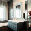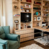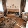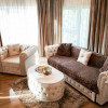 Mobilierul a fost realizat pe comanda si importat din Italia, parchetul din stejar auriu a fost produs in Suedia, iar usile din sticla mata au fost produse in Italia,