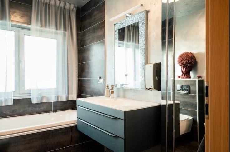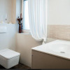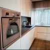 Bucataria este complet mobilata si utilata si dispune de combina frigorific, plita electrica AEG, electrocasnice din gama Premium.